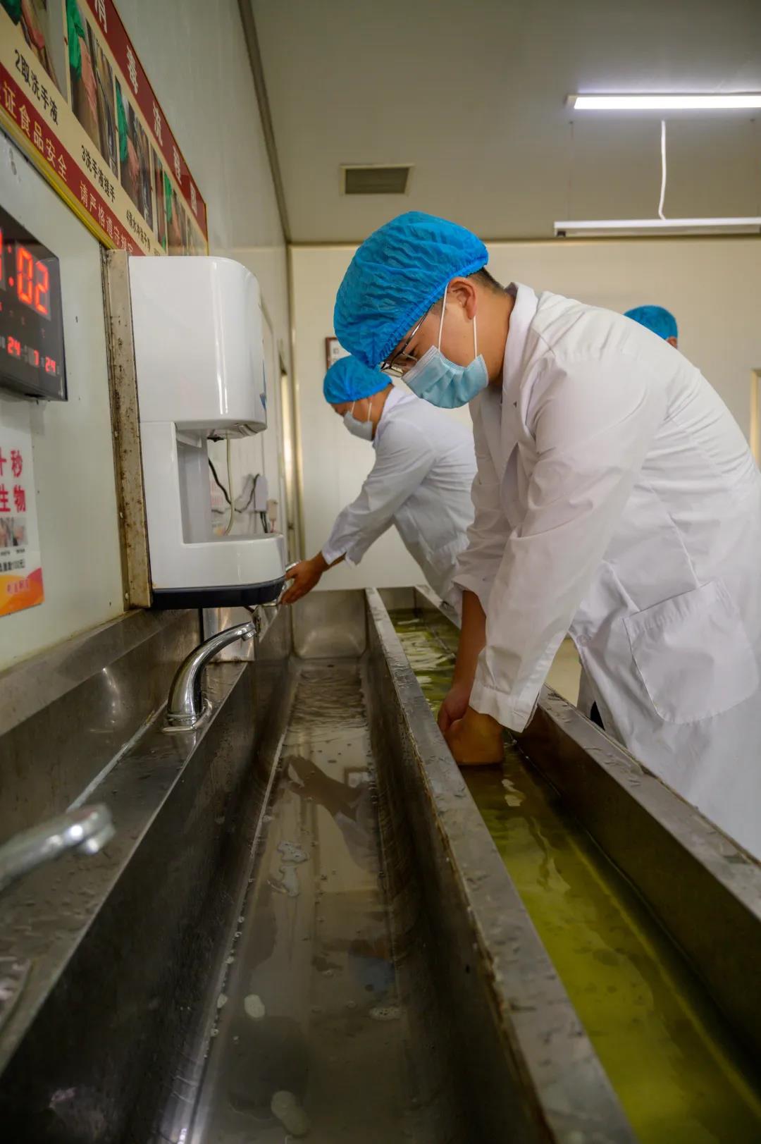 严酷遵守AG旗舰厅食物相关划定,全副武装、洗手消毒、360度风淋除尘之后进入生产车间